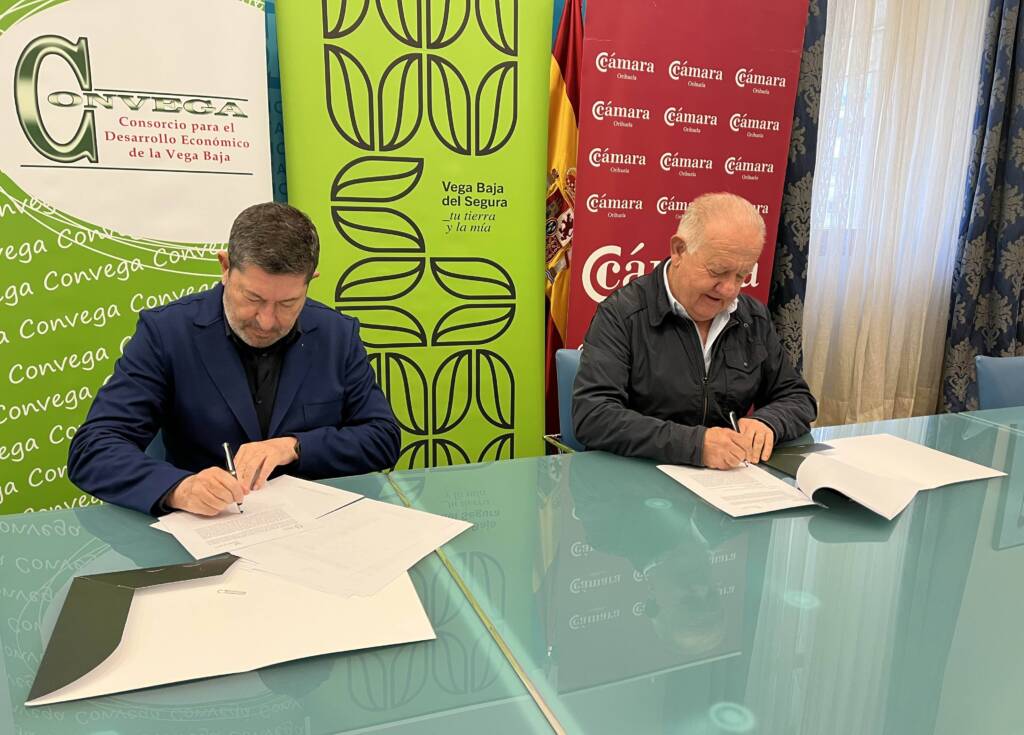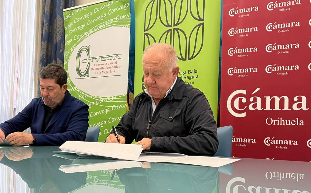 El Presidente de Convega, Sebastián Cañadas ha recordado que “lo que pretendemos con esta colaboración es el impulso de actuaciones dirigidas al incremento de la competitividad de las pequeñas y medianas empresas de la Vega Baja del Segura; además del fomento de la innovación en el tejido empresarial de la comarca. Esta marca territorio reúne una serie de valores, tanto de la comarca como de sus gentes. Es importantísima la adhesión de la Cámara de Comercio que aglutina una parte importantísima del empresariado de la zona, para que vayamos sumando y pongamos aún más en el candelero a esta marca territorio. La comarca tiene mucho futuro, conocemos el tejido empresarial, sus productos y servicios y el compromiso de la gente con la tierra”.