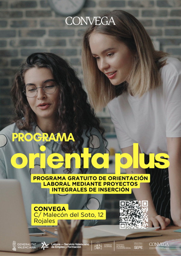 ORIENTA PLUS es un programa gratuito de orientación laboral individual y grupal, impulsado por CONVEGA con el apoyo de LABORA, dirigido a personas desempleadas de la Vega Baja del Segura que quieren mejorar su empleabilidad, redefinir su objetivo profesional o acceder a nuevas oportunidades de trabajo.